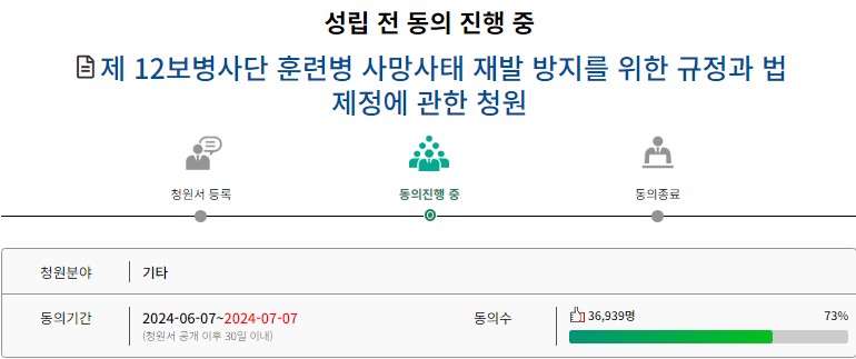 Áö³ 7ÀÏ ±¹È¸ ±¹¹Î µ¿ÀÇ Ã»¿ø ȨÆäÀÌÁö¿¡´Â 'Á¦12º¸º´»ç´Ü ÈÆ·Ãº´ »ç¸Á»çÅ Àç¹ß ¹æÁö¸¦ À§ÇÑ ±ÔÁ¤°ú ¹ý Á¦Á¤¿¡ °üÇÑ Ã»¿ø' Á¦¸ñÀÇ Ã»¿ø¿¡,