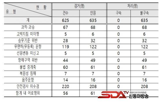 ÁÖ¿ä Àû¹ß À¯ÇüÀ¸·Î´Â ¨ç ¾ÈÀü°Ë»ç ¹Ì¼ö°Ë 220°Ç(35%), ¨è ¹«¸éÇã(¹«µî·Ï) ¿îÇ× 119°Ç(19%), ¨é °úÀû・°ú½Â 67°Ç(10.7%), ¨ê ºÒ¹ý Áõ°³Ãà 60°Ç(9.6%) µîÀÌ´Ù.