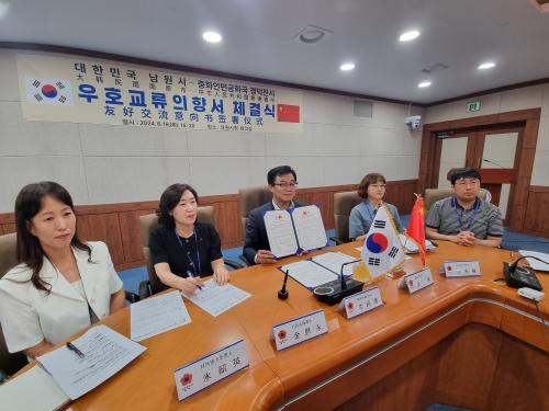 [½Åµ¿¾Æ¹æ¼Û=À̺´½Ä±âÀÚ] ´ëÇѹα¹ ÀüºÏƯº°ÀÚÄ¡µµ ³²¿ø½Ã¿Í Áß±¹ °­¼­¼º °æ´öÁø½Ã°¡ 18ÀÏ È­»óȸÀǸ¦ ÅëÇØ¼­ À̼øÅà ³²¿ø½Ã ºÎ½ÃÀå, ÃÖ¼ÒÇâ °æ´öÁø½Ã ºÎ½ÃÀå µîÀÌ Âü¼®ÇÑ °¡¿îµ¥ »ó»ý¹ßÀü°ú °øµ¿¹ø¿µÀ» À§ÇÑ ¿ìÈ£±³·ùÀÇÇâ¼­¸¦ ü°áÇß´Ù.