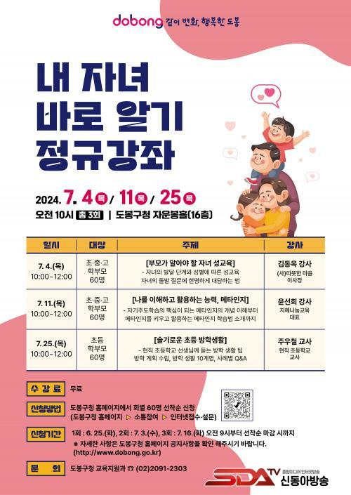°­Á´ 7¿ù ÇÑ ´Þ°£ ÃÑ 3ȸ µµºÀ±¸Ã» 16Ãþ ÀÚ¿îºÀȦ¿¡¼­ ÁøÇàµÈ´Ù. ¸ÕÀú 7¿ù 4ÀÏ¿¡´Â ¡®ºÎ¸ð°¡ ¾Ë¾Æ¾ß ÇÒ ÀÚ³à ¼º±³À°¡¯À» ÁÖÁ¦·Î ¿­¸®¸ç, 7¿ù 11Àϰú 7¿ù 25ÀÏ¿¡´Â °¢°¢ ¡®³ª¸¦ ÀÌÇØÇϰí Ȱ¿ëÇÏ´Â ´É·Â, ¸ÞŸÀÎÁö¡¯, ¡®½½±â·Î¿î ÃÊµî ¹æÇлýȰ¡¯À» ÁÖÁ¦·Î ½Ç½ÃµÈ´Ù.