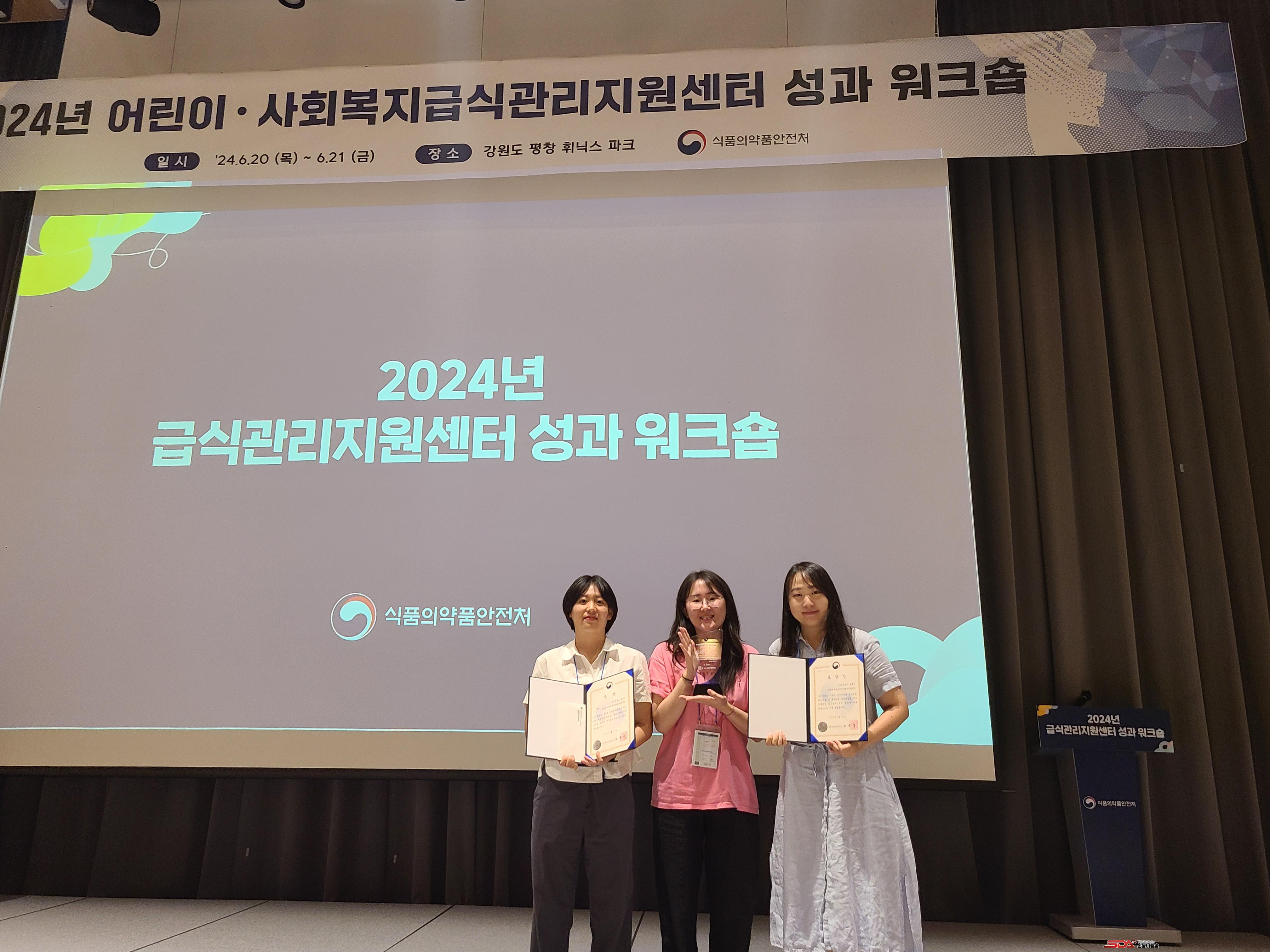 ½ÄǰÀǾàǰ¾ÈÀüó ÁÖ°ü ¡®Á¦6ȸ ±Þ½ÄÁö¿ø ¿ì¼ö»ç·Ê °ø¸ðÀü¡¯¿¡¼µµ ¶æ±íÀº ¼öÈ®À» °Åµ×´Ù. ¼¾ÅÍ´Â °ø¸ðÀü¿¡¼ ¡®¾î¸°ÀÌ‧»çȸº¹Áö ±Þ½Ä¼ÒÀÇ À§»ý ¼øÈ¸¹æ¹® °á°úÁöÀÇ »ç·Êº° Ç¥ÁØÈ¡¯·Î Àå·Á»óÀ» ¼ö»óÇß´Ù.