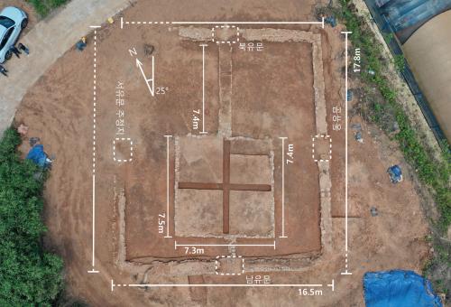 ÃâÀԽü³Àº ³× ¹æÇâ¿¡ °ÉÃÄ ÀÖ¾ú´ø °ÍÀ¸·Î ÃßÁ¤µÇÁö¸¸, ¼ÂÊ ÃâÀԽü³Àº ÆÄ±«µÇ¾î È®ÀεÇÁö ¾Ê´Â´Ù. ƯÈ÷ ºÏÂÊ ÃâÀԽü³¿¡¼ ºÏÂÊ Á¦´ÜÀÇ Áß¾Ó±îÁö ±æÀÌ ¾à 8m, Æø 80§¯ÀÇ ÅëÇà·Î°¡ È®ÀεȴÙ. ±üµ¹À» ÀÌ¿ëÇÏ¿© °æ°è¸¦ Ç¥½ÃÇßÀ¸¸ç, ¹Ù´ÚÀº ÈëÀ¸·Î ä¿öÁ® ÀÖ´Ù.