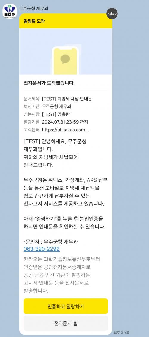 ¹«ÁÖ±ºÃ» À繫°ú ¡¼öÆÀ ±è¿Á¶õ ÆÀÀåÀº ¡°³³¼¼ ÆíÀÇ È¿°ú¸¦ °í·ÁÇØ ÀÌ¹Ì »ç¿ëÀÌ º¸ÆíÈ­µÈ īī¿ÀÅåÀ» ¾Ë¸² ¼ö´ÜÀ¸·Î Ȱ¿ëÇÏ°Ô µÈ °Í¡±À̶ó¸ç ¡°ÀÌ·Î½á °íÁö¼­¸¦ ¹ÞÁö ¸øÇØ ¹ß»ýÇÏ´Â ¹Î¿øÀº ÁÙÀÌ°í °³ÀÎÁ¤º¸ ³ëÃâ À§Çè ¿ª½Ã Â÷´ÜÇÒ ¼ö ÀÖÀ» °Í¡±À̶ó°í ¹àÇû´Ù.