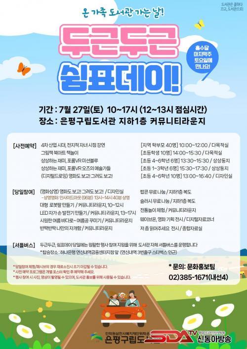 ÀºÆò±¸¸³µµ¼­°ü °ü°èÀÚ´Â ¡°7¿ù ¡®µÎ±ÙµÎ±Ù, ½°Ç¥µ¥ÀÌ!¡¯¸¦ ¸Â¾Æ ´Ùä·Î¿î °­¿¬°ú üÇè µîÀ» ÁغñÇß´Ù¡±¸ç ¡°À̹ø Çà»ç¸¦ ÅëÇØ ¹«´õ¿î ¿©¸§À» ¸Â¾Æ ½Ã¿øÇÑ µµ¼­°ü¿¡¼­ ¿Â °¡Á·ÀÌ ÇÔ²² Áñ°Å¿î Ãß¾ïÀ» ½×À¸½Ã±æ ¹Ù¶õ´Ù¡±¶ó°í ¸»Çß´Ù.