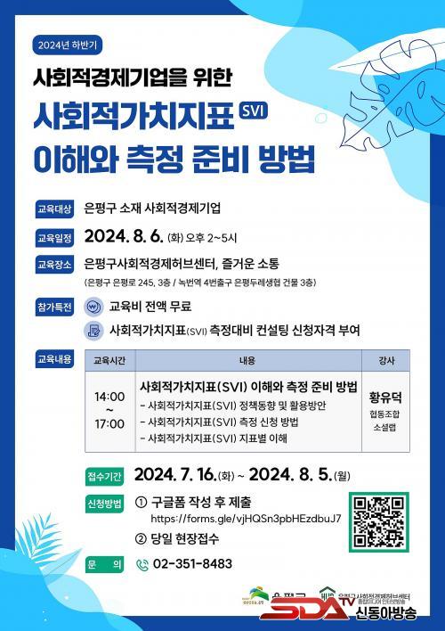 ±³À°ÀÇ ÁÖ¿ä ³»¿ëÀº ¡ã»çȸÀû°¡Ä¡ÁöÇ¥(SVI) Á¤Ã¥ µ¿Çâ ¡ã»çȸÀû°¡Ä¡ÁöÇ¥(SVI) ±â¾÷ °æ¿µÈ°¿ë ¹æ¾È°ú ±¹³» Ȱ¿ë»ç·Ê ¡ã»çȸÀû°¡Ä¡ÁöÇ¥(SVI) ÃøÁ¤ ½Åû ¹æ¹ý ¡ã»çȸÀû°¡Ä¡ÁöÇ¥(SVI) ÁöÇ¥º° ±³À° ¹× µ¥ÀÌÅÍ È°¿ë ¹æ¹ýÀÌ´Ù.