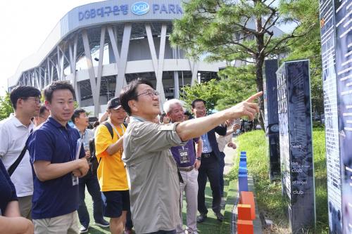 ° ½ÃÀå°ú È« ½ÃÀåÀº 21ÀÏ Àú³á ´ë±¸½Ã DGB´ë±¸ÀºÇàÆÄÅ©¿¡¼ ¿¸° K¸®±× ¡®±¤ÁÖFC-´ë±¸FC Ã౸ °æ±â¡¯¸¦ °ü¶÷Çß´Ù. ¾ç ½ÃÀåÀº °æ±â ½ÃÀÛ Àü ±×¶ó¿îµå¿¡ ¿Ã¶ó °æ±âÀåÀ» ãÀº °ü¶÷°´µé¿¡°Ô ÀλçÇß´Ù. ¾ç ½ÃÀåÀÌ ½ºÆ÷Ã÷ °æ±â¸¦ ÇÔ²² °ü¶÷ÇÑ °ÍÀº À̹øÀÌ Ã³À½ÀÌ´Ù.