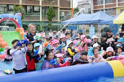 ¼­±¸ È­Á¤1µ¿Àº 26~27ÀÏ ±¤ÁÖ¼­ÃʵîÇб³ ¿îµ¿Àå¿¡¼­ ¡®Á¦2ȸ ¿ì¸®µ¿³× ½æ¸Ó ǮIJ½º¡¯¸¦ °³ÃÖÇÑ´Ù. ¼­±¸´Â Çб³ ¿îµ¿Àå¿¡ ´ëÇü‧ÁßÇü ¿öÅͽ½¶óÀÌµå ¹× ¼ö¿µÀåÀ» ¼³Ä¡ÇÏ°í ¹°ÃÑ´ëÀü, ¸¶¼ú°ø¿¬, ´í½ºÅ¸ÀÓ µî ÁÖ¹ÎÀÌ ÇÔ²² Âü¿©Çϰí Áñ±â´Â ÇÁ·Î±×·¥À» ¿î¿µÇÑ´Ù. È­Á¤1µ¿Àº Áö³­ÇØ ÀÌ Çà»ç¸¦ óÀ½ ±âÈ¹ÇØ ¾ÆÀ̵鿡°Ô ¾ÈÀüÇϰí ÄèÀûÇÑ ³îÀÌȯ°æÀ» Á¦°øÇϰí Çб³ ¿îµ¿Àå °øÀ¯¸¦ ÅëÇØ ¸¶À»°ú Çб³ °£ »ó»ý‧Çù·ÂÀÇ ÀåÀ» ¸¶·ÃÇߴٴ ȣÆòÀ» ¹Þ¾Ò´Ù.