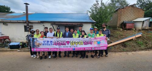 À̳¯ ºÀ»ç´Ü¿ø 20¸íÀÌ ÈûÀ» ¸ð¾Æ ºø¹°¹ÞÀÌÆÇÀ» ¼³Ä¡Çϰí, µµ¹è¿Í ÀåÆÇ ±³Ã¼¸¦ Çß´Ù. Áý¼ö¸® ÈÄ Áý¾È ³»¿ÜºÎ ÁÖº¯À» Á¤¸®ÇØ ÄèÀûÇÑ º¸±ÝÀÚ¸®·Î Å»¹Ù²ÞÇß´Ù.