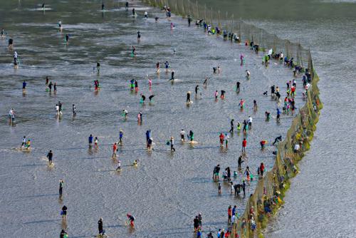 ¹°ÀÌ ºüÁø °¹¹ú À§ ±×¹°¿¡´Â ÁÖ·Î ¼þ¾î, ³ó¾î, µ¼ µîÀÇ ´Ù¾çÇÑ ¾î·ù°¡ °É¸®°Ô µÇ¸ç À̶§ üÇè °ü±¤°´µéÀÌ °¹¹ú ¾ÈÀ¸·Î µé¾î°¡ ¸Ç¼ÕÀ¸·Î Á÷Á¢ Àâ´Â´Ù.