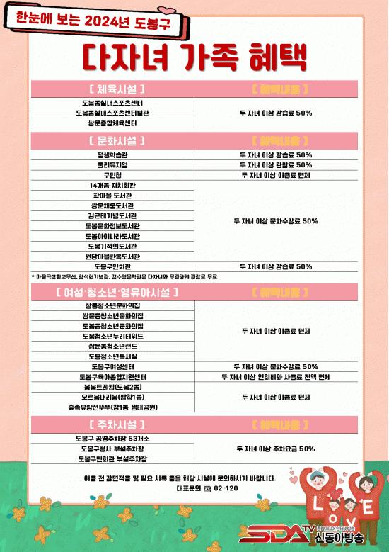 µµºÀ±¸ ¼­¿ïÇü ŰÁîÄ«Æä 3°÷°ú µµºÀ±¸À°¾ÆÁ¾ÇÕÁö¿ø¼¾ÅÍ´Â 2ÀÚ³à ÀÌ»ó ¹«·á·Î ÀÌ¿ëÇÒ ¼ö ÀÖÀ¸¸ç µµºÀµ¿½Ç³»½ºÆ÷Ã÷¼¾ÅÍ µî °ø°ø üÀ°½Ã¼³°ú µÑ¸®¹ÂÁö¾ö, µµºÀ±¸¹Îȸ°ü µî ±³À°¡¤¹®È­½Ã¼³, Áö¿ª ³» °ø¿µÁÖÂ÷Àå 53°³¼Ò µîÀÇ ÁÖÂ÷½Ã¼³Àº 50% °¨¸é ÇýÅÃÀ» ¹ÞÀ» ¼ö ÀÖ´Ù.