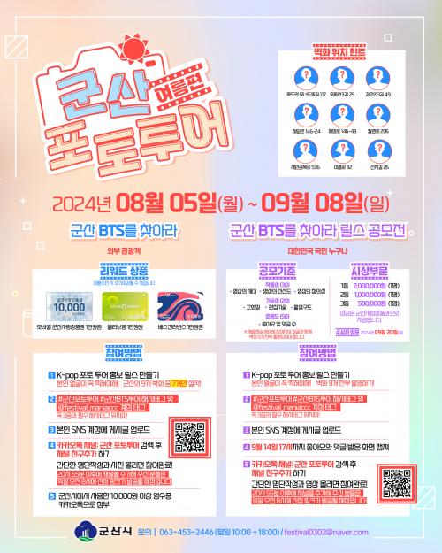 Æ÷ÅäÅõ¾î Âü°¡´Â ¿ÜºÎ °ü±¤°´À» ´ë»óÀ¸·Î Çϸç Âü°¡ÀÚµéÀº ±º»ê½Ã ³» BTS 9°÷ º®È Áß 7°÷À» ¹æ¹®ÇÏ¿© º®È¿Í ÇÔ²² ¾ó±¼ÀÌ ³ª¿À´Â ÀÎÁõ¼¦À» ÃÔ¿µÇÏ¿© SNS¿¡ ¾÷·ÎµåÇÏ¸é µÈ´Ù.