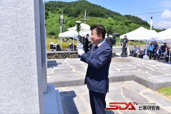 »çÁø=¿©¼ö½Ã(½ÃÀå Á¤±â¸í)¿Í ÀÌ¾ßÆ÷ ¹Ì±ºÆø°Ý»ç°Ç À§·É»ç¾÷ ÃßÁøÀ§¿øÈ¸(À§¿øÀå ½É¸í³²)°¡ 2ÀÏ ³²¸é ¾Èµµ ÀÌ¾ßÆ÷ ÆòÈ­°ø¿ø¿¡¼­ ¡®74Áֳ⠹ΰ£ÀÎ Èñ»ýÀÚ Ã߸ðÁ¦¡¯¸¦ °¡Á³´Ù.