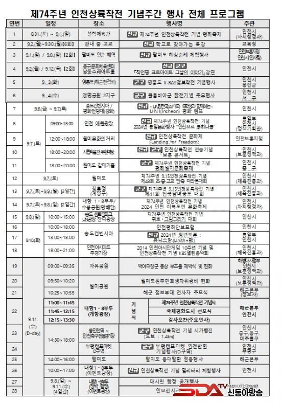 ±â³ä½ÄÀº 9¿ù 11ÀÏ¿¡ ³»Ç× 1¡¤8ºÎµÎ(°³Ç×±¤Àå)¿¡¼ °³ÃֵȴÙ. ÀÎõ±¤¿ª½ÃÀå, ÀÎõ±¤¿ª½ÃÀÇȸÀÇÀå, ±¹¹æºÎÀå°ü, ±¹³»¿Ü ÂüÀü¿ë»ç µîÀÇ ³»ºóÀÌ Âü¼®ÇØ ÂüÀü¿ë»ç ȸ°í»ç, Ãà»ç¡¤±â³ä»ç, ÂüÀü±¹ ÁÖ¿ä ÁöÈÖ°ü ¸Þ½ÃÁö ¼øÀ¸·Î ÁøÇàµÉ ¿¹Á¤ÀÌ´Ù.