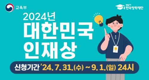 ¡®´ëÇѹα¹ ÀÎÀç»ó¡¯Àº ¡ãÁöÇý¿Í ¿­Á¤À¸·Î Ź¿ùÇÑ ¼ºÃë ¡ãâÀÇÀû »ç°í·Î »õ·Î¿î °¡Ä¡ âÃâ ¡ã¹è·Á¿Í »çȸ¹ßÀü¿¡ ±â¿© µî 3°¡Áö ±âÁØÀ» ÃæÁ·ÇÏ°í ´Ù¾çÇÑ ºÐ¾ß¿¡¼­ ¿ª·®À» ¹ßÈÖÇÏ´Â ¿ì¼ö û³â ÀÎÀ縦 ¹ß±¼ÇØ ½Ã»óÇϰí Áö¿øÇÏ´Â »ç¾÷À¸·Î, ±³À°ºÎ¿Í Çѱ¹ÀåÇÐÀç´ÜÀÌ ÁÖ°üÇϰí ÀÖ´Ù.