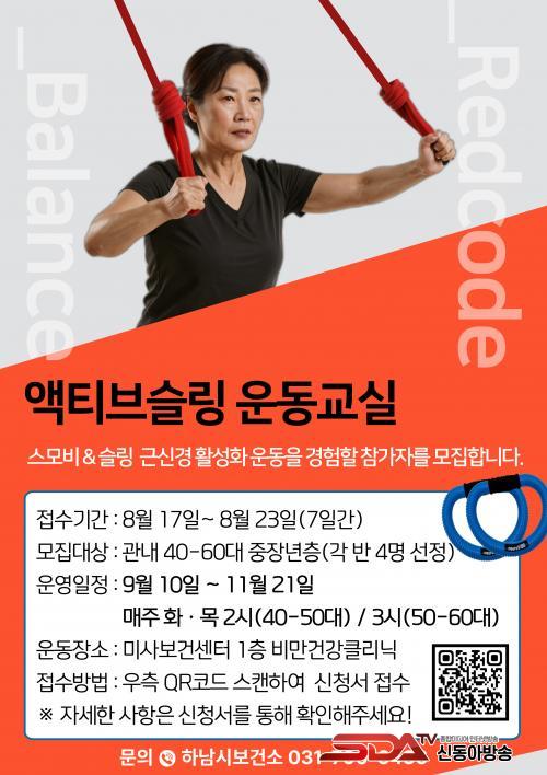 ¾×Ƽºê½½¸µ ¿îµ¿±³½ÇÀº ½º¸ðºñ¿Í ½½¸µ ¿îµ¿±â±¸¸¦ Ȱ¿ëÇØ ¸öÀÇ ¿îµ¿°¨°¢À» Ű¿ì°í ±ÙÀ°°ú ½Å°æ°è¸¦ Ȱ¼ºÈ­ÇÏ´Â ¿îµ¿ ÇÁ·Î±×·¥ÀÌ´Ù. ¿À´Â 9¿ù 10ÀϺÎÅÍ 10ÁÖ°£ ¸ÅÁÖ È­¡¤¸ñ¿äÀÏ ¡ã4050 ¾×Ƽºê½½¸µ¹Ý(40~50´ë Âü¿© °¡´É¹Ý, 4¸í ¸ðÁý) ¿ÀÈÄ 2½Ã ¡ã5060 ¾×Ƽºê½½¸µ¹Ý(50~60´ë Âü¿© °¡´É¹Ý, 4¸í ¸ðÁý) ¿ÀÈÄ 3½Ã µî 2°³¹ÝÀ¸·Î ³ª´² ¿î¿µÇÒ °èȹÀÌ´Ù.