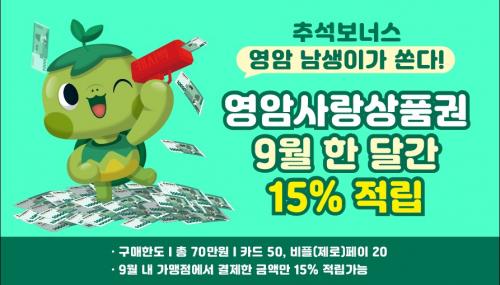 ¡®Ãß¼® º¸³Ê½º ¿µ¾Ï³²»ýÀ̰¡ ½ð´Ù¡¯°¡ Á¦¸ñÀÎ À̹ø À̺¥Æ® ±â°£¿¡ ¿µ¾Ï»ç¶û»óǰ±Ç °¡¸ÍÁ¡¿¡¼ °áÁ¦ÇÏ¸é ±âÁ¸ 10%¿¡ ´õÇØ Ãß°¡ 5%¸¦ ´õ Àû¸³ ¹ÞÀ» ¼ö ÀÖ´Ù.
