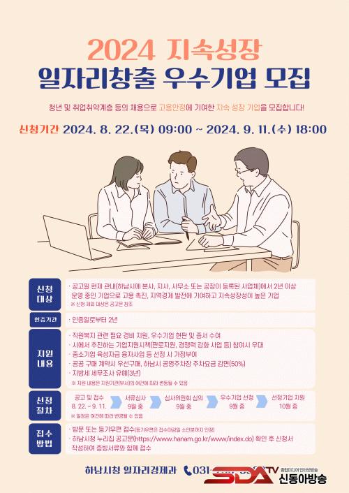[½Åµ¿¾Æ¹æ»ó=À̽ŵ¿±âÀÚ]Çϳ²½Ã(½ÃÀå ÀÌÇöÀç)´Â Áö¿ª°æÁ¦ ¹ßÀü°ú °í¿ë ÃËÁø¿¡ ³ë·ÂÇÏ´Â Áö¼Ó¼ºÀå ÀÏÀÚ¸®Ã¢Ãâ ¿ì¼ö±â¾÷¿¡ Á÷¿øº¹Áö¿Í °ü·ÃµÈ ÇÊ¿ä°æºñ µî ´Ù¾çÇÑ ÇýÅÃÀ» ºÎ¿©Çϱâ À§ÇØ ¿À´Â 9¿ù 11ÀϱîÁö ¡®2024³â Áö¼Ó¼ºÀå ÀÏÀÚ¸®Ã¢Ãâ ¿ì¼ö±â¾÷¡¯À» ¸ðÁýÇÑ´Ù°í ¹àÇû´Ù.