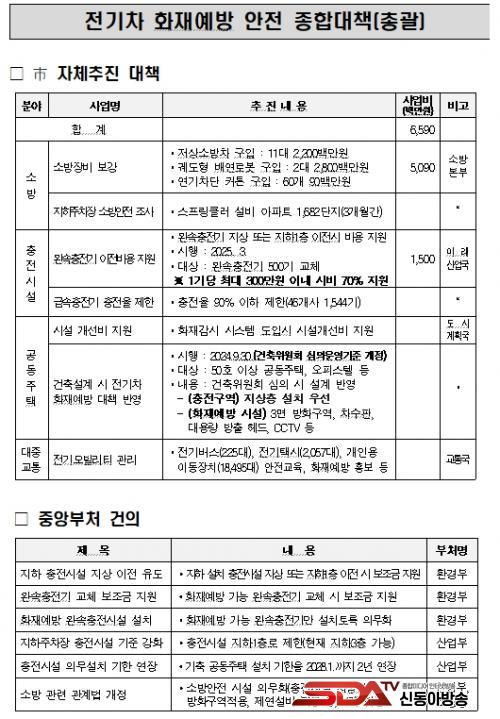 ÇÑÆí, Á¤ºÎ´Â û¶ó ¾ÆÆÄÆ® Àü±âÂ÷ ÈÀç¿Í °ü·ÃµÈ ´Ù¾çÇÑ Á¾ÇÕ´ëÃ¥À» ¸¶·Ã ÁßÀ̸ç, ´ÙÀ½ ´Þ ÃÊ ¹ßÇ¥ÇÒ °èȹÀÌ´Ù. ÀÎõ½Ã´Â À̹ø »ç°í°¡ ÀÎõ¿¡¼ ¹ß»ýÇÑ ¸¸Å, ÀÎõ½ÃÀÇ ÀǰßÀÌ ¹Ý¿µµÉ ¼ö ÀÖµµ·Ï ¡ãÁöÇÏ 3Ãþ±îÁö ¼³Ä¡ °¡´ÉÇÑ ÃæÀü½Ã¼³À» ÁöÇÏ 1ÃþÀ¸·Î Á¦ÇÑ ¡ãÁöÇÏ ¼³Ä¡ ÃæÀü±â Áö»ó ÀÌÀü ½Ã º¸Á¶±Ý Áö¿ø ¡ãÈÀç ¿¹¹æÀ» À§ÇÑ ¿Ï¼Ó ÃæÀü±â ±³Ã¼ ½Ã º¸Á¶±Ý Áö¿ø ¡ãÈÀç ¿¹¹æ ±â´ÉÀÌ ÀåÂøµÈ ¿Ï¼Ó ÃæÀü½Ã¼³ Àǹ«È ¡ã±âÁ¸ °øµ¿ÁÖÅÃ ÃæÀü½Ã¼³ Àǹ« ¼³Ä¡ ±âÇÑ ¿¬Àå µîÀ» °ÇÀÇÇß´Ù.