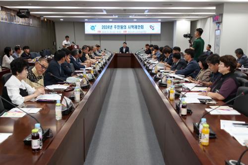 À̳¯ Á¦¾Èȸ´Â ¿À¼ºÈ¯ ½ÃÀå°ú °ü·Ã ºÎ¼Àå, À¾¸éµ¿ ÁÖ¹ÎÀÚġȸÀå µî 50¿© ¸íÀÌ Âü¼®ÇÑ °¡¿îµ¥ ÁÖ¹ÎÃÑȸ °á°ú º¸°í, ÁֹιßÀÇ ½ÃÃ¥ Á¦¾È ¼³¸í, ÁúÀÇÀÀ´ä ¹× Á¦¾È ½ÃÃ¥ Åä·Ð ¼ø¼·Î À̾îÁ³´Ù.