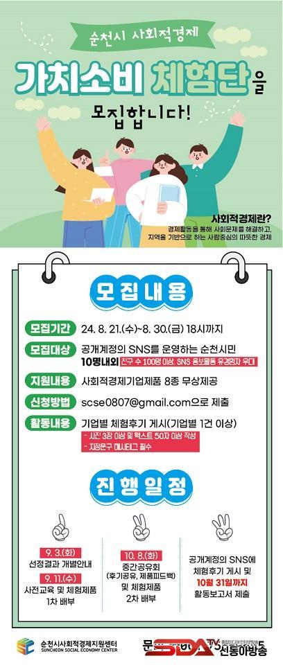 °¡Ä¡¼Òºñ üÇè´ÜÀº ¼øÃµ½Ã¹Î 10¸í ³»¿Ü·Î ±¸¼ºµÇ¸ç, °³ÀÎ ºí·Î±×¿Í SNS¸¦ ¿î¿µÇϰí Ä£±¸ ¼ö°¡ 100¸í ÀÌ»óÀÎ ½Ã¹ÎÀ» ´ë»óÀ¸·Î ÇÑ´Ù. üÇè´ÜÀº »çȸÀû °¡Ä¡¼ÒºñÀÇ °³³ä¿¡ ´ëÇÑ »çÀü ±³À°À» ¹Þ°í Ȱµ¿À» ½ÃÀÛÇÏ°Ô µÈ´Ù.