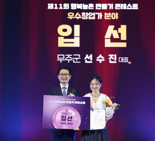 ¹«ÁÖ±º¿¡ µû¸£¸é ¾È¼º¸é (À¯)¼ÒÈ£ÆÊÇϿ콺 ¼±¼öÁø ´ëÇ¥°¡ Á¦11ȸ Çູ³óÃÌ ¸¸µé±â ÄÜÅ×½ºÆ® ¿ì¼ö â¾÷°¡ ºÐ¾ß¿¡¼ ³ó¸²Ãà»ê½ÄǰºÎ Àå°ü»óÀ» ¼ö»óÇß´Ù. ÀÌ »óÀº ³óÃÌÁö¿ª â¾÷À» ÅëÇØ Áö¿ª»çȸ¿¡ °øÇåÇ߰ųª ÀÏÀÚ¸® âÃ⡤Áö¿ª»çȸ Ȱ¼ºÈ µî¿¡ ±â¿©ÇÑ ÀÚµéÀ» °Ý·ÁÇϱâ À§ÇØ ¼ö¿©ÇÏ´Â °ÍÀ¸·Î,