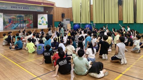 °ø¿¬Àº Áö±¸¿Â³­È­·Î ÁýÀ» ÀÒ°í ±¾ÁÖ¸²¿¡ óÇÑ ºÏ±Ø°õ ¡®°í¹Ì¡¯°¡ ´Ù½Ã ºÏ±ØÀ¸·Î µ¹¾Æ°¡ ÇູÇÏ°Ô »ì ¼ö ÀÖµµ·Ï Áö±¸ »ì¸®±â ´ëÀÛÀüÀ» ÆîÄ¡´Â ³»¿ëÀ¸·Î ±âÈÄÀ§±â¶ó´Â »çȸ¹®Á¦¸¦ ÃʵîÇлýµéÀÇ ´«³ôÀÌ¿¡ ¸ÂÃç ÀÎÇü±Ø ¹ÂÁöÄà ÇüÅ·ΠÀü´ÞÇß´Ù. ƯÈ÷ Áö±¸¿Âµµ »ó½Â ¿äÀÎÀ» ÇÔ²² ã¾Æº¸´Â Âü¿©Çü °ø¿¬À¸·Î ¸ôÀÔµµ¸¦ ³ô¿© ÇлýµéÀÇ È£ÀÀÀ» À̲ø¾ú´Ù.