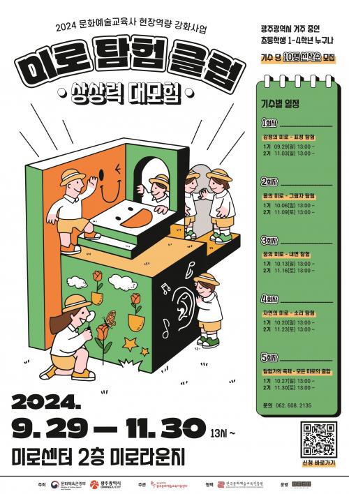 ¡®2024 ¹®È¿¹¼ú±³À°»ç ÇöÀå ¿ª·®°È »ç¾÷¡¯ ÀÏȯÀ¸·Î ÃßÁøÇÏ´Â À̹ø ÇÁ·Î±×·¥Àº ±¤ÁÖ±¤¿ª½Ã¿Í ¹®ÈüÀ°°ü±¤ºÎ°¡ ÁÖÃÖÇÏ°í ±¤ÁÖ¹®È¿¹¼ú±³À°Áö¿ø¼¾ÅͰ¡ ÁÖ°üÇϸç, Çѱ¹¹®È¿¹¼ú±³À°ÁøÈï¿ø°ú Çù·ÂÇØ ¹Ì·Î¼¾ÅÍ¿¡¼ ¿î¿µµÈ´Ù.