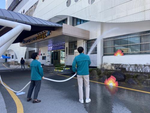 Àü±âÂ÷ ÈÀç Áø¾Ð ÈÆ·Ã¿¡¼´Â Áú½Ä ¼ÒÈÆ÷ »ç¿ë ¹æ¹ý ¼³¸í ¹× ÇϺÎÁÖ¼ö°üâ Àåºñ¸¦ ÅëÇØ ¹èÅ͸®¿¡ Á÷Á¢ ¹°À» ºÐ»çÇÏ´Â ½Ã¿¬À» Çϸç ÈÀç ¹ß»ý ½Ã Ãʱ⠴ëÀÀÀÇ Á߿伺À» °Á¶Çß´Ù.