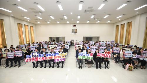 À̳¯ °áÀÇ´ëȸ´Â Á¦2Áß¾Ó°æÂûÇб³ À¯Ä¡¸¦ Èñ¸ÁÇÏ´Â ³²¿ø½Ã¹Î°ú Á÷¿øµéÀÇ ¿°¿øÀ» ´ãÀº °áÀǹ® ³¶µ¶°ú ¡®°æÂû±³À°ÀÇ ²É ³²¿ø½Ã¿¡¼ ÇǾ´Ù.¡¯, ¡®°æÂû ±³À°ÀÇ Á᫐ ³²¿ø ¿îºÀÀ¸·Î!¡¯ µî°ú °°Àº ÇÇÄÏÀ» µé°í ¸ðµÎ ÇÔ²² ±¸È£¸¦ ¿ÜÄ¡´Â ¼øÀ¸·Î ÁøÇàµÇ¾ú´Ù.