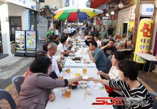 15½Ã¿¡´Â ½ÃÀå ³» ´ÙÀÌ¼Ò ¿·¿¡ ¸¶·ÃÇÑ ¹«´ë¿¡¼ 1½Ã°£ µ¿¾È °ø¿¬ÀÌ ¿¸°´Ù. ¹«´ë¿¡¼ºÎÅÍ 100m±îÁö Å×À̺í 50°³¿Í ÀÇÀÚ 300°³¸¦ ÁغñÇØ ¹æ¹®°´µéÀÌ ÆíÇÏ°Ô À½½ÄÀ» Áñ±æ ¼ö ÀÖµµ·Ï ¸¸µé¾ú´Ù.
