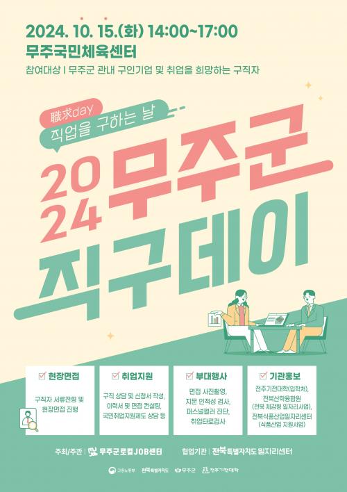 ÀüÁÖ°í¿ëº¹ÁöÇ÷¯½º¼¾ÅÍ¿Í ÀüºÏƯº°ÀÚÄ¡µµÀÏÀÚ¸®¼¾ÅÍ, ÀüºÏ±¤¿ª¿©¼º»õ·ÎÀÏÇϱ⼾ÅÍ, ¹«ÁÖ±º·ÎÄÃJOB¼¾ÅÍ¿¡¼µµ ±¹¹ÎÃë¾÷Áö¿øÁ¦µµ »ó´ãÀ» ºñ·ÔÇÑ ±¸Á÷ »ó´ã µî ±¸Á÷ÀÚ ¸ÂÃãÇü Ãë¾÷ Áö¿ø ¼ºñ½º¸¦ Á¦°øÇÑ´Ù.