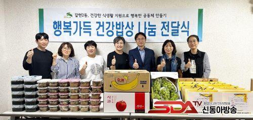 °¥Çö2µ¿Àº °ü³» ¹ÝÂù°¡°Ô, ½´ÆÛ µî°ú »çȸÀû ³ª´® ¾÷¹«Çù¾àÀ» ÅëÇØ 1ÀÎ °¡±¸ Ãë¾à°èÃþ 15¸í¿¡°Ô ¹Ø¹ÝÂù°ú Á¦Ã¶ °úÀÏÀÎ ¹Ù³ª³ª¿Í »þÀθӽºÄÏ µî Àü´ÞÇß´Ù.
