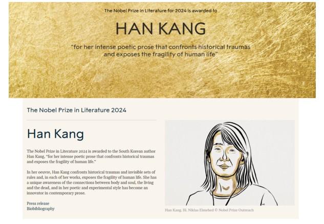 10ÀÏ ½º¿þµ§ ÇѸ²¿ø ¸¶Ã÷ ¸»¸§ Á¾½Åºñ¼´Â 2024³â ³ëº§ ¹®Çлó ¼ö»óÀÚ·Î Çѱ¹ÀÇ ¼Ò¼³°¡ ÇѰÀÌ ¼±Á¤µÆ´Ù°í ¹ßÇ¥Çϸé¼,