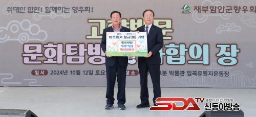 ´ë¼Û¹®ÈÀç´ÜÀÇ ´ë¼ÛÀº ¼³¸³ÀÚ À̱Ùö ȸÀåÀÇ È£À̸ç ÇÔ¾È¸é ´ë»ç¸® Ãâ½ÅÀ¸·Î¼ °íÇâÀ» À§ÇØ 3000¸¸ÀÇ ¼öÀçÀÇ¿¬±Ý°ú 500¸¸ ¿ø °íÇâ»ç¶û±âºÎ, ¸ð±³ÀÎ ÇÔ¾ÈÃʵîÇб³ ´Ù¸ñÀûüÀ°°ü °Ç¸³°ú ´ë»ç¸® ¸¶À» ¾Õ ¾²·¹±âÀåÀ» »ïÁ¤°ø¿øÀ¸·Î ¸¸µé¾î ±âÁõÇÏ´Â µî °íÇâÀÇ ¾ÖÇâ½É¿¡ °ÇÑ °ÍÀ¸·Î ¾Ë·ÁÁ® ÀÖ´Ù.