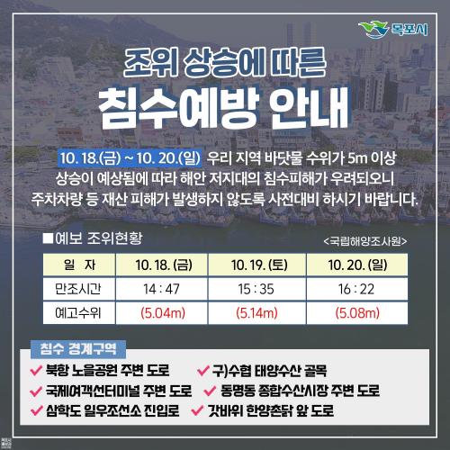ÇÑÆí, ¸ñÆ÷½Ã´Â ¹Ù´å¹° ¼öÀ§°¡ Á¶¼®Ç¥»ó Á¶°í 4.90mÀÌ»óÀÏ °æ¿ì ÇØ¼ö À§ÇèÀÏ·Î ÁöÁ¤ÇØ ½Ã¹ÎµéÀÇ Àç»êÇÇÇØ°¡ ¹ß»ýÇÏÁö ¾Êµµ·Ï ħ¼öÇÇÇØ ¿¹¹æ¿¡ Àû±Ø ´ëóÇϰí ÀÖ´Ù.