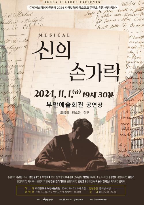 À̹ø °ø¿¬Àº (Àç)¿¹¼ú°æ¿µÁö¿ø¼¾ÅͰ¡ ÁÖÃÖÇÏ´Â 2024 °ø¿¬¿¹¼ú Áö¿ª À¯ÅëÁö¿ø °ø¸ð»ç¾÷ ¼±Á¤ °ø¿¬À¸·Î ±ºÀÌ ÁÖ°üÇÏ°í ¹®ÈüÀ°°ü±¤ºÎ°¡ ÈÄ¿øÇÑ´Ù.
