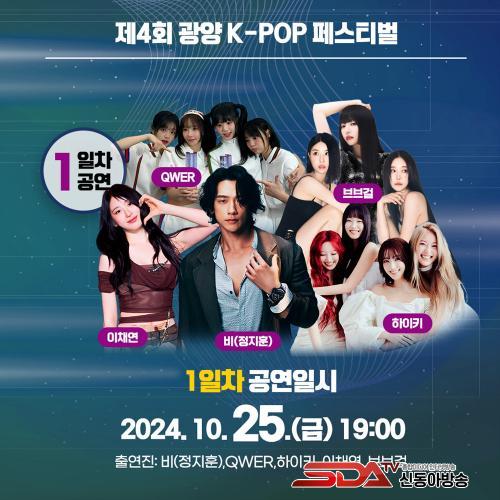 ÇÑÆí, Á¦4ȸ ±¤¾ç K-POP Æä½ºÆ¼¹úÀº 10¿ù 25Àϰú 26ÀÏ ¼¼´ë¿Í ÃëÇâÀ» ¾Æ¿ì¸£´Â ÃÖ° ¶óÀξ÷À¸·Î ½Ã¹Î°ú °ü±¤°´À» ¸Â´Â´Ù. ù³¯ÀÎ 25ÀÏ¿¡´Â ºñ, QWER, ÇÏÀÌŰ, ÀÌ俬, ºêºê°É, µÑ° ³¯Àº ¹ÚÁ¤Çö, ½Å¿ëÀç, ÀåÀ±Á¤, ±è¿¬ÀÚ µîÀÌ ´ë°Å Ãâµ¿ÇØ ½ºÆåÆ®·³ ³ÐÀº È·ÁÇÑ ¹«´ë¸¦ ¼±»çÇÒ ¿¹Á¤ÀÌ´Ù.