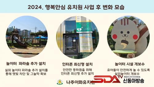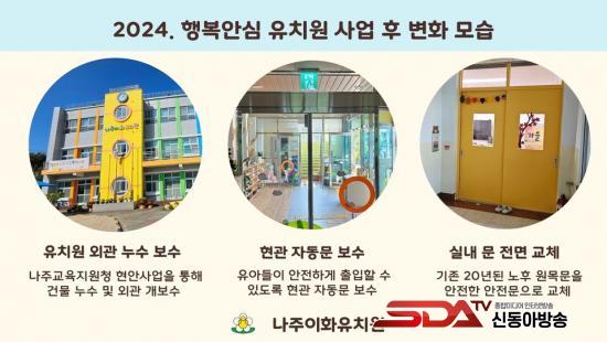 ¶ÇÇÑ Å« ¿¹»êÀÌ ÇÊ¿äÇÑ ½Ã¼³ º¸¼ö´Â ³ªÁÖ±³À°Áö¿øÃ» Çö¾È»ç¾÷ ½ÅûÀ» ÅëÇØ °Ç¹° ´©¼ö¿Í ¿Ü°ü º¸¼ö, ³ëÈÄÈµÈ ¹Ì´ÝÀÌ ½Ç³»¹® Àü¸é ±³Ã¼ÇÏ¿© À¯¾ÆµéÀÌ ¾È½ÉÇϰí ÇູÇÏ°Ô ³î ±Ç¸®¸¦ º¸ÀåÇÏ¿´´Ù.