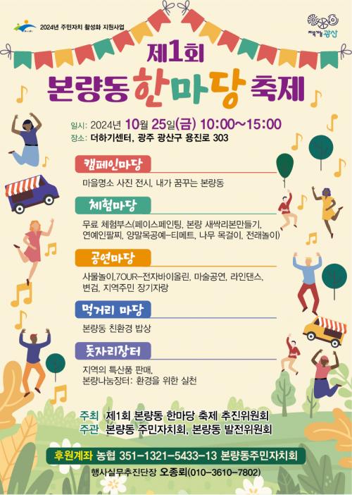 º»·®µ¿ ÇѸ¶´ç ÃàÁ¦ÃßÁøÀ§¿øÈ¸(À§¿øÀå ¿ÀÈ¿, ±èÁ¾ÈÄ)°¡ ÁÖÃÖÇϰí, º»·®µ¿ ÁÖ¹ÎÀÚġȸ‧¹ßÀüÀ§¿øÈ¸°¡ ÁÖ°üÇÏ´Â À̹ø Çà»ç´Â ¸¶À» ÁÖ¹ÎÀÌ ´ÙÇÔ²² ¾î¿ï¸®¸ç ÈÇÕÇÏ´Â ÀåÀÌ µÉ ¿¹Á¤ÀÌ´Ù.