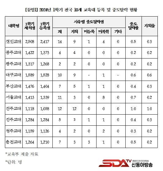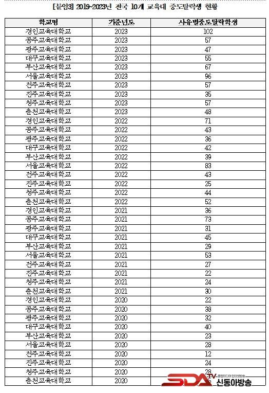 ¡à ÇÑÆí, ÀÇ´ë Á¤¿ø È®´ë¿¡ µû¸¥ ¹Ý¼ö»ý µîÀ¸·Î ¿ÃÇØ 1Çбâ ÁßµµÅ»¶ô»ýÀÌ 76¸í, ÀÚÅð»ýÀº 52¸íÀ̾ú°í 2Çбâ´Â ÈÞÇлý 655¸í, ÀÚÅð»ý 46¸íÀÎ °ÍÀ¸·Î Á¶»çµÆ´Ù. 2Çбâ ÈÞÇлýÀº °æÀα³´ë°¡ 133¸íÀ¸·Î °¡Àå ¸¹¾ÒÀ¸¸ç ¼¿ï±³´ë 116¸í, ºÎ»ê±³´ë 102¸í, ÁøÁÖ±³´ë 85¸í µîÀÇ ¼øÀ̾ú´Ù. ÀÚÅð»ýÀº ÀüÁÖ±³´ë°¡ 17¸íÀ¸·Î °¡Àå ¸¹¾Ò´Ù. ÃÖ±Ù Àü±¹ 10°³ ±³À°´ëÀÇ ÁßµµÅ»¶ô»ýÀÌ 2019³â 233¸í, 2020³â 272¸í, 2021³â 370¸í, 2023³â 478¸í, 2023³â 621¸íÀ¸·Î °è¼Ó ±ÞÁõ¼¼¿©¼ ¿ÃÇØµµ ¿ì·Á°¡ Ä¿Áö°í ÀÖ´Ù.