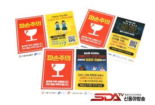 ÀÌ ½ºÆ¼Ä¿´Â Çб³Æø·Â, µöÆäÀÌÅ©, µµ¹Ú, ¸¶¾à µî 4°¡Áö ÁÖÁ¦·Î ³ª´µ¾î °¢ 1¸¸ À徿 Á¦À۵ƴÙ. ¡°ÀÏ»óÀ» ÆÄ±«ÇÏ´Â µöÆäÀÌÅ©!! ÁÖÀǰ溸!! ¼º¹üÁË·Î ¾öÁßÈ÷ ó¹úµË´Ï´Ù.¡±, ¡°Å¸ÀÎÀÌ Ã³¹æ¹ÞÀº ÀǾàǰ °Å·¡´Â ±¸¸ÅÀÚ¿Í ÆÇ¸ÅÀÚ ¸ðµÎ ó¹úµË´Ï´Ù.¡± µî °æ°í ¹®±¸¿Í ÇÔ²² µµ¿òÀ» ¿äûÇÒ ¼ö ÀÖ´Â ±â°üÀÇ ¿¬¶ôó¿Í ¸¶¾à·ù À͸í°Ë»ç ½Åû ¸µÅ©°¡ ´ã±ä QRÄڵ尡 Æ÷ÇԵƴÙ.
