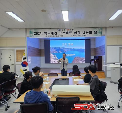 ½ÅÁ¦¼º ±³À°ÀåÀº¡°À̹ø ¹éµÎ´ë°£ ÇÁ·ÎÁ§Æ®¸¦ ÅëÇØ ¿ì¸® ±¸·Ê ÇлýµéÀÌ ´öÀ¯»êºÎÅÍ ¹éµÎ»ê±îÁö ¿ì¸® »îÀÇ ÅÍÀüÀÎ ¹éµÎ´ë°£ÀÇ ¼ÒÁßÇÔÀ» ±íÀÌ ´À³¢°í, ³ª¾Æ°¡ ±Û·Î¹ú ½Ã¹ÎÀ¸·Î ¼ºÀåÇÏ´Â °è±â°¡ µÇ¾ú±â¸¦ ¹Ù¶õ´Ù.¡±°í °Ý·ÁÇϸç, ¡°¿À´Ã ¼º°ú ³ª´®À¸·Î ¹éµÎ´ë°£ ÇÁ·ÎÁ§Æ®ÀÇ ¹ßÀüÀû ÃßÁø·ÂÀ» È®º¸ÇÏ¿© Áö¼ÓÀûÀÎ ÇÁ·ÎÁ§Æ®°¡ µÇµµ·Ï Èû¾²°Ú´Ù.¡±°í ¸»Çß´Ù.