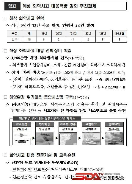 ù°·Î ➀ÇØ»ó ÈÇлç°í ´ëÀÀ¿ë 1,500Åæ±Þ ´ëÇü ÈÇйæÁ¦ÇÔÀ» °ÇÁ¶Çϰí, ➁¿È»óÄ«¸Þ¶ó µî ÈÇлç°í ´ëÀÀ Àåºñ¤ýÀÚÀç 11Á¾ 1,200¿© Á¡À» È®ÃæÇÒ °èȹÀÌ´Ù. ¶ÇÇÑ, ➂¿À¿°¹°Áú È®»ê ¹× ÇÇÇØ¿¹ÃøÀ» À§ÇÑ ÇØ¾çȯ°æ À§±â´ëÀÀ ÅëÇսýºÅÛ ±¸ÃàÇØ »ç°í ¹ß»ý ½Ã Á¶±â¿¡ ´ëÀÀÇÒ ¼ö ÀÖ´Â ±â¹ÝÀ» ¸¶·ÃÇÒ ¿¹Á¤ÀÌ´Ù.