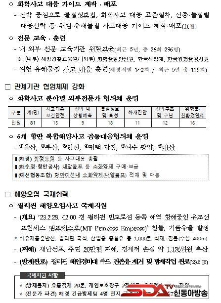 ƯÈ÷, °íÁúÀû ¹®Á¦·Î ÁöÀûµÇ´Â Àå±â°£ ÇפýÆ÷±¸¿¡ ¹æÄ¡¤ý°è·ùµÇ¾î ÇØ¾ç¿À¿°»ç°í¸¦ À¯¹ßÇÏ´Â Ãë¾à¼±¹Ú¿¡ ´ëÇØ °ü°è±â°ü°ú ÇÔ²² º¸´Ù Àû±ØÀûÀÎ °ü¸®¿¡ ³ª¼°í ÀÖ´Ù. ³ª¾Æ°¡ »ç°í ¿ì·Á°¡ ³ôÀº ¼±¹ÚÀº ÇØ¾ç°æÂûûÀÇ Á÷Á¢ÀûÀÎ ¿¹¹æÁ¶Ä¡°¡ °¡´ÉÇϵµ·Ï ¹ýÀû ±Ù°Å¸¦ ¸¶·ÃÇÏ´Â µî °ü°è±â°ü°ú Á¦µµ°³¼±À» À§Çؼµµ Çù·ÂÇϰí ÀÖ´Ù.
