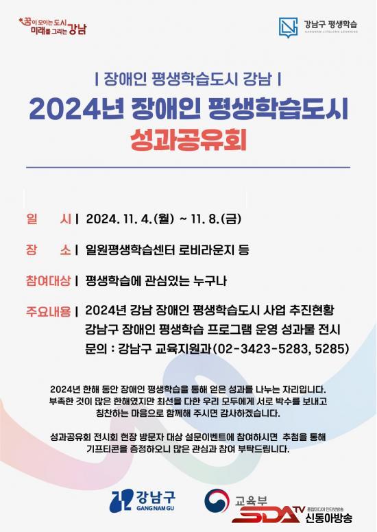 °³²±¸´Â Áö³ 1¿ùºÎÅÍ ±³À°ºÎ »êÇÏ ±¹¸³Æ¯¼ö±³À°¿øÀÇ ¡®2024³â Àå¾ÖÀÎ Æò»ýÇнÀµµ½Ã »ç¾÷¡¯ °ø¸ð¿¡ ¼±Á¤µÇ¾î Àå¾ÖÀΰú ºñÀå¾ÖÀÎÀÌ ÇÔ²²ÇÏ´Â Æò»ýÇнÀ ÇÁ·Î±×·¥À» ¿î¿µÇؿԴÙ. À̸¦ ÅëÇØ °ü³» 6°³ ±â°ü¿¡¼ ÃÑ 13°³ÀÇ °Á¸¦ 138ȸ¿¡ °ÉÃÄ ÁøÇàÇß´Ù.