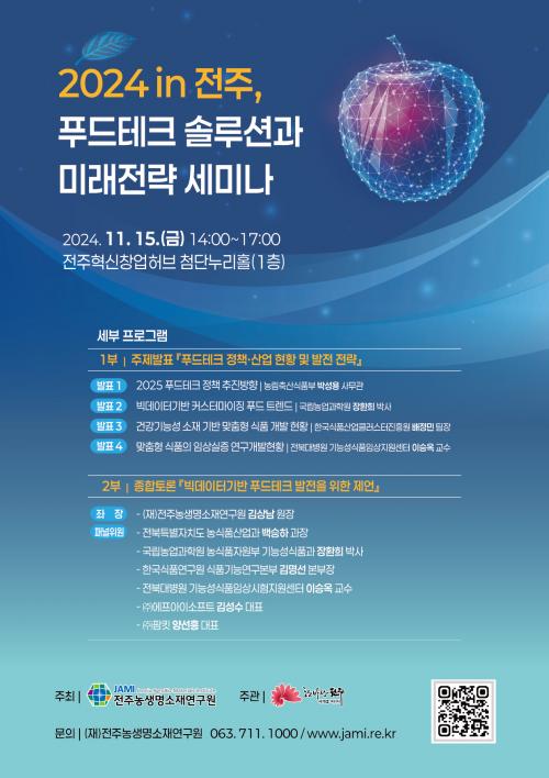 À̾îÁø 2ºÎ Åä·Ðȸ¿¡¼´Â ±è»ó³² (Àç)ÀüÁÖ³ó»ý¸í¼ÒÀ翬±¸¿øÀåÀ» ÁÂÀåÀ¸·Î ¹é½ÂÇÏ ÀüºÏƯº°ÀÚÄ¡µµ ³ó½Äǰ»ê¾÷°úÀå°ú ±è¸í¼± Çѱ¹½Äǰ¿¬±¸¿ø º»ºÎÀå, ±è¼º¼ö ¢ß¿¡ÇÁ¾ÆÀ̼ÒÇÁÆ® ´ëÇ¥, ¾ç¼±Èï ¢ßÆÊŶ ´ëÇ¥ µîÀÌ ÆÐ³Î·Î Âü¿©ÇØ ¹Ì·¡ ǪµåÅ×Å© »ê¾÷ÀÇ ¼Ö·ç¼Ç°ú ´Ù¾çÇÑ ¾ÆÀ̵ð¾î¸¦ °øÀ¯ÇÒ ¿¹Á¤ÀÌ´Ù.