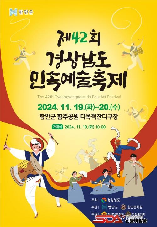 °æ³²¹Î¼Ó¿¹¼úÃàÁ¦´Â °æ»ó³²µµ¿¡¼­ ÁÖÃÖÇϰí ÇԾȱº, ÇԾȹ®È­¿øÀÌ °øµ¿ ÁÖ°üÇÏ¸ç °æ³²Áö¿ª ÀüÅë¹Î¼Ó ¿¹¼úÀÇ ¹ß±¼‧°è½ÂÀ» À§ÇØ 1968³â óÀ½ ´ëȸ¸¦ ½ÃÀÛÇØ ¿ÃÇØ 42ȸ°¸¦ ¸ÂÀÌÇÏ´Â °æ³² ÃÖ°íÀÇ ¹Î¼Ó¿¹¼ú ÃàÁ¦´Ù.»ç¶óÁ®°¡´Â Áö¿ªÀÇ ¹Î¼Ó¿¹¼úÀ» ¹ß±¼ÇØ °è½Â¡¤¹ßÀü½ÃŰ¸ç ¹®È­À¯»êÀ¸·Î¼­ÀÇ °¡Ä¡¸¦ ÀçÁ¶¸íÇÏ´Â ¿ªÇÒÀ» Çϰí ÀÖ´Ù.