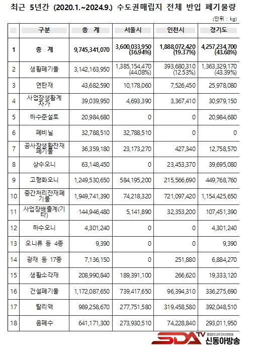 ¡¡<2024 Çà°¨> ÃÖ±Ù 5³â°£ ÃÑ 974¸¸t Áß °æ±â 425¸¸t¡¤¼­¿ï 360¸¸t