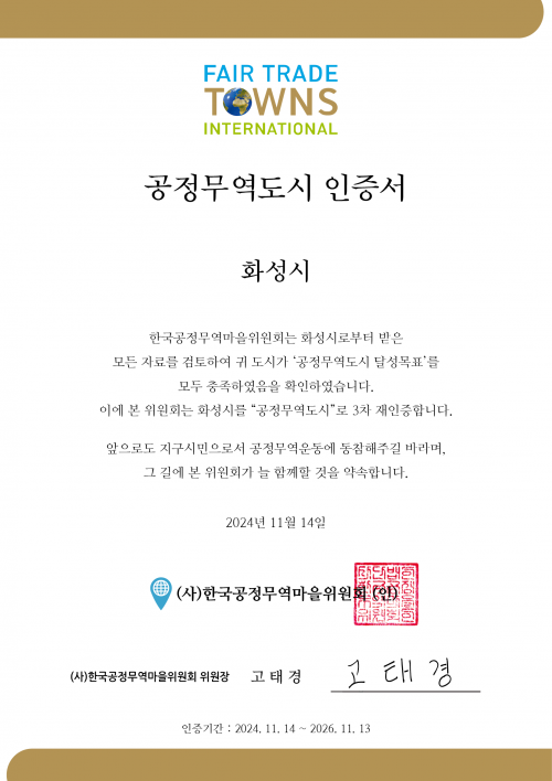 [½Åµ¿¾Æ¹æ¼Û=ÀÌÀçö±âÀÚ] È­¼º½Ã(½ÃÀå Á¤¸í±Ù)°¡ (»ç)Çѱ¹°øÁ¤¹«¿ª¸¶À»À§¿øÈ¸·ÎºÎÅÍ ¡®°øÁ¤¹«¿ªµµ½Ã¡¯ 3Â÷ ÀçÀÎÁõÀ» ȹµæÇß´Ù°í 20ÀÏ ¹àÇû´Ù.