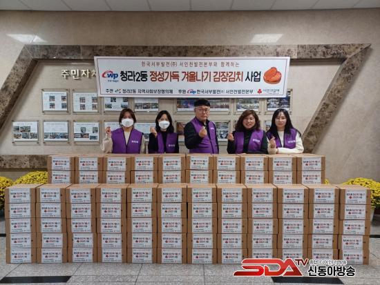 À̹ø »ç¾÷Àº û¶ó2µ¿ Áö¿ª»çȸº¸ÀåÇùÀÇü°¡ ÁÖ°üÇÏ¿´À¸¸ç Çѱ¹¼­ºÎ¹ßÀü(ÁÖ) ¼­ÀÎõ¹ßÀüº»ºÎÀÇ ÈÄ¿øÀ» ¹Þ¾Ò´Ù. ÈÄ¿ø±ÝÀ¸·Î ¸¶·ÃµÈ ±èÄ¡ ÃÑ 150»óÀÚ(»óÀÚ´ç 5kg)°¡ û¶ó2µ¿ °ü³» ¼Ò¿ÜµÈ ÀÌ¿ôµé¿¡°Ô Àü´ÞµÉ ¿¹Á¤ÀÌ´Ù.